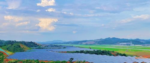 龙滩电厂梧州西江机场光伏发电项目位于广西梧州西江机场跑道旁,占地面积1000余亩,装机总量为50兆瓦,为目前国内比较大的机场集中式光伏电站。