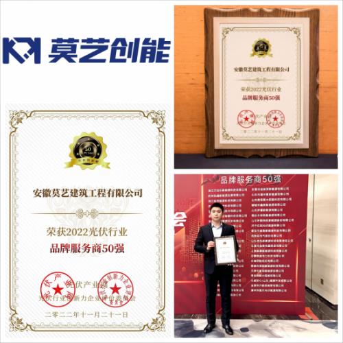 此次莫艺创能在评审专家的严格评审后,从众多光伏企业中脱颖而出,成功摘得2022光伏行业“品牌服务商50强企业”荣誉称号的背后,是莫艺创能对行业坚持不懈的深耕精作,对光伏配套服务赛道的敏锐洞察和科技创新,更是莫艺创能对技术创新的矢志追求!