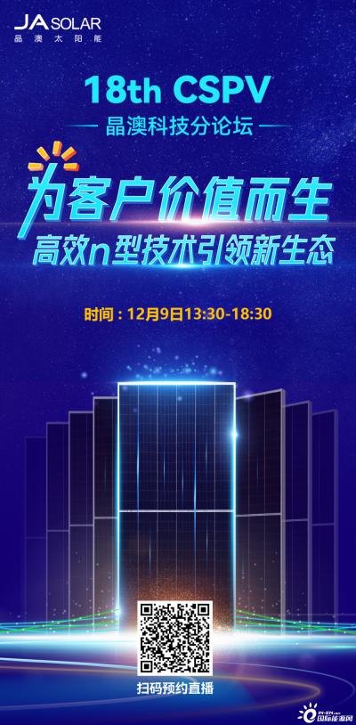 12月9日下午13:30-18:30,晶澳科技期待与您相约“为客户价值而生—高效n型技术引领新生态”分论坛。欢迎扫码预约直播!