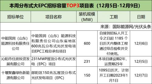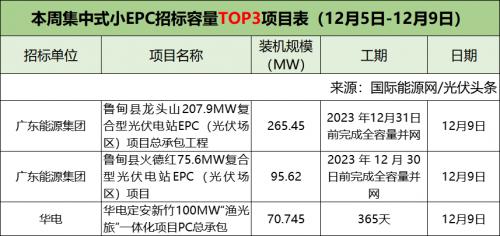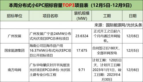 此外,本周分布式小EPC、集中式小EPC招标容量TOP3项目,具体情况如下: