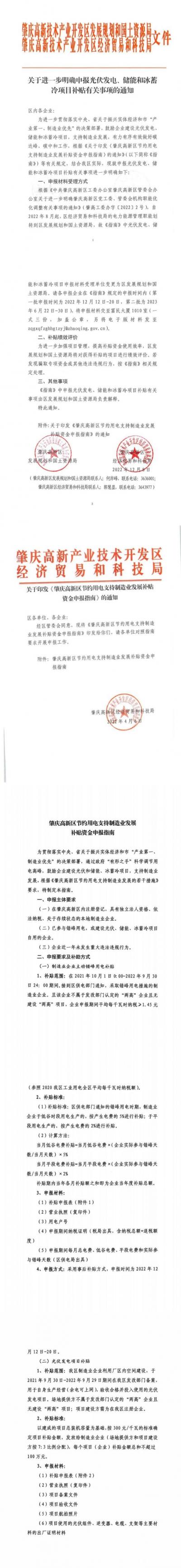 12月10日,广东省肇庆高新区发展规划和国土资源局、肇庆高新区经济贸易和科技局发布关于进一步明确申报光伏发电、储能和冰蓄冷项目补贴有关事项的通知。