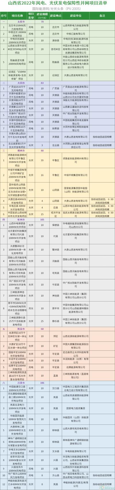 附件:山西省2022年风电、光伏发电保障性并网项目清单