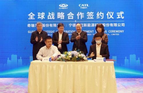 12月14日,宁德时代新能源科技股份有限公司(下简称“宁德时代”)与奇瑞控股集团有限公司(下简称“奇瑞集团”)签署战略合作框架协议。宁德时代董事长曾毓群、市场体系联席总裁屠枫、供应链及运营体系联席总裁冯春艳、国内乘用车事业部执行总裁刘畅延,奇瑞集团董事长尹同跃、总经理助理张劲松等出席签约仪式。