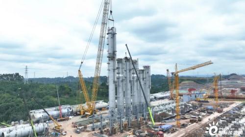 “决战四季度,在场施工人员日均1200人以上,日均施工机械300台以上。项目建设采取‘白加黑’、值班轮岗的模式,加快推进。”永祥能源科技项目指挥长助理马彪介绍,该项目有主要装置51个,截至目前,已陆续完成区域变电所、机柜间、消防水池等11个装置土建工程的封顶工作,以及精馏筏板、尾气回收筏板的浇筑。精馏塔吊装正有序进行中,整个项目建设进度比计划提前了2个月。