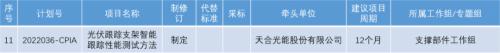 近日,中国光伏行业协会印发2022年第三批光伏协会标准制修订计划。该计划共批准21项光伏相关产品技术测试方法及技术规范,此次由天合光能主导起草的《光伏跟踪支架智能跟踪性能测试方法》项目是首个被列入行业标准的跟踪支架智能化方面的项目,对跟踪支架智能化发展具有重大的意义和影响。