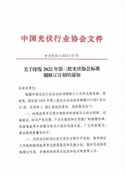 2022年第三批光伏协会标准制修订计划项目汇总表