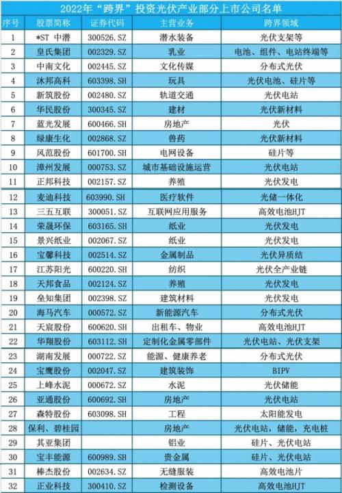 自2021年TCL、创维、海螺水泥等家电、水泥巨头们跨界布局光伏行业后,2022年,来自其他行业的更多玩家陆续登场,一时跨界光伏成风。