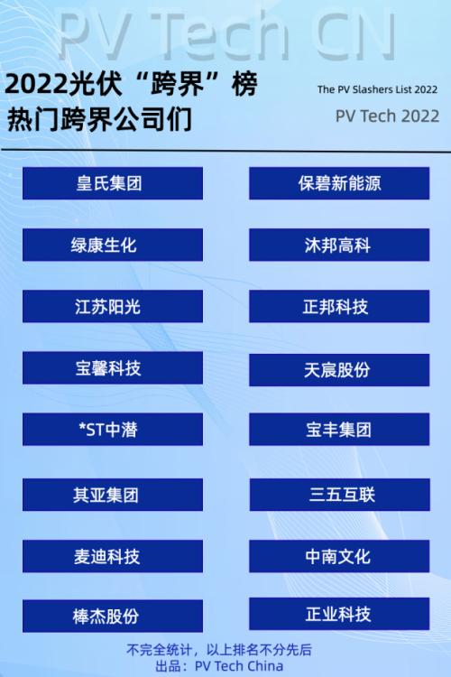 那么,哪些跨界公司值得期待?下面我们来回顾盘点一下2022年那些备受关注的跨界光伏赛道“种子”选手们。