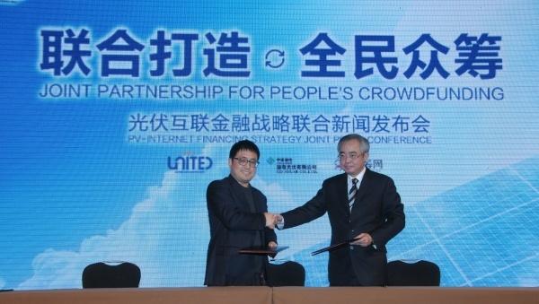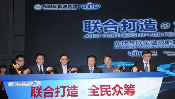 中国香港,2014年2月19日—联合光伏集团有限公司(「联合光伏」或「本公司」,股份代号: 0686.HK,联合光伏的第一大股东为招商新能源集团有限公司「招商新能源」) ,中国领先的专注太阳能光伏电站投资和运营的企业,今日在深圳召开“联合打造,全民众筹”——光伏互联金融战略联合新闻发布会,携手国电光伏和网信金融(众筹网)等合作伙伴共同启动光伏互联金融战略合作,通过互联网众筹的崭新模式在中国的改革前沿—深圳前海新区联合开发全球第一个兆瓦级的分布式太阳能电站项目,这是国内光伏电力行业与互联网金融的第一次牵手,是光伏电站产业发展的里程碑。同时,国家开发银行将与联合光伏一起积极探索创新投融资模式,重点支持大型并网光伏电站、国家分布式光伏发电示范区等项目建设,服务国家能源战略,合理管控项目风险,促进我国光伏产业健康可持续发展。