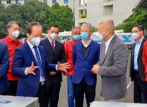 1月9日上午,中山市委书记郭文海带队与氢蓝时代和晓兰新能源汽车公司领导进行了深入的现场互动,听取了氢蓝时代创始人、董事长金晓辉及两家企业核心团队的汇报,并详细了解了企业最新的“整车-系统-电堆”系列产品。市委常委、常务副市长叶红光,市委常委、秘书长李长春以及有关部门领导也在现场陪同。