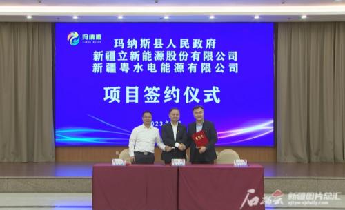 1月12日,玛纳斯县人民政府与新疆立新能源股份有限公司、新疆粤水电能源有限公司举行签约仪式,以强强联合的方式推进玛纳斯县100万千瓦光伏大基地项目建设。