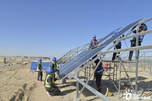 洛浦县40万千瓦光伏发电项目现场,工人正在施工。张亚辉摄