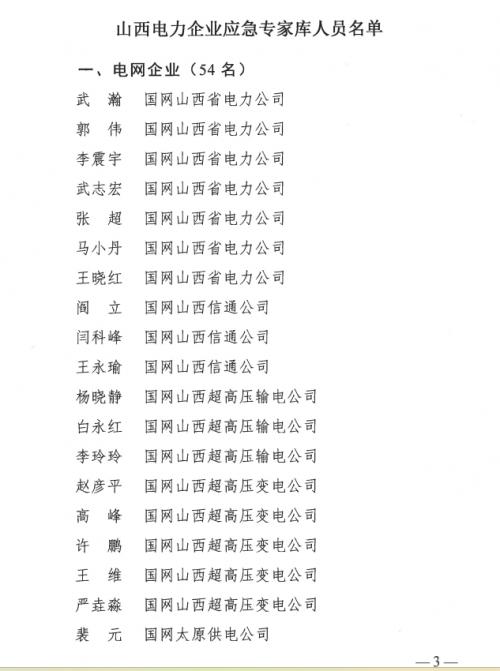 日前,山西能源监管办印发关于调整山西电力应急专家库的通知,决定调整129名同志为山西电力应急专家库成员,其中,7名新能源发电成员。