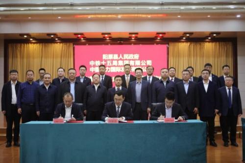 3月7日,中铁十五局集团公司与河北省阳原县政府、中国电力在河北省阳原县签署风光电制绿氨项目三方战略合作协议,并进行商务会谈。阳原县县长何景明,中国电力国际发展有限公司党委副书记、副总裁、工会主席傅劲松,集团公司党委常委、副总经理朱勇,共同见证签约仪式。