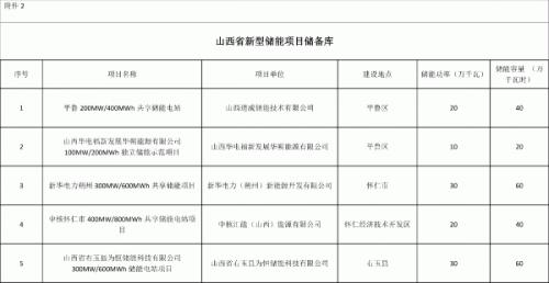 二、列入新型储能项目储备库项目共5个,装机规模110万千瓦,待项目完善相关手续后,经论证滚动纳入项目库。