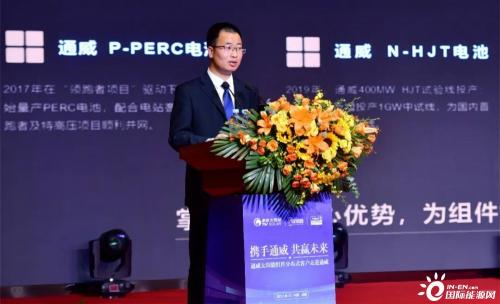 在分享交流环节,通威太阳能组件分布式技术支持经理刘辉全面展示和深度阐述了通威光伏产业链发展实力,对通威组件产品矩阵进行了推介及技术路线讲解,重点介绍了为分布式业务打造的明星产品182-72版型N型组件。