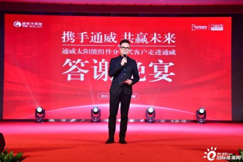 东峻阳光(厦门)新能源有限公司总经理吴荣矾、北京找光网能源科技有限公司董事长张志豪作为客户代表现场分享了与通威合作的感受,并表示,选择与谁同行比要去的远方更重要。从员工认可、行业信誉、发展速度等方面,感受到通威是有光的;从全产业链一体化优势、稳定可靠的质量、及时保供能力、精益生产等方面,证明通威是有实力的;从完整的渠道管理体系、明确的落地方案、完善的渠道商培养体系、基于渠道的后台系统,确认通威是真有渠道的。期望拥抱通威,深入到通威渠道商体系中去,实现互利共赢。