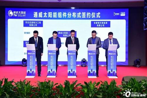 在与会领导的见证下,28家合作企业与通威签署组件合作协议,签约总量超2950MW,为2023年通威组件分布式出货目标及进一步拓展组件下沉市场打下了良好基础。