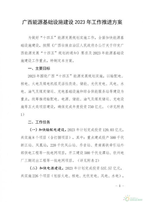 ,4月3日,广西壮族自治区发改委发布关于《广西能源基础设施建设2023年工作推进方案》的通知。