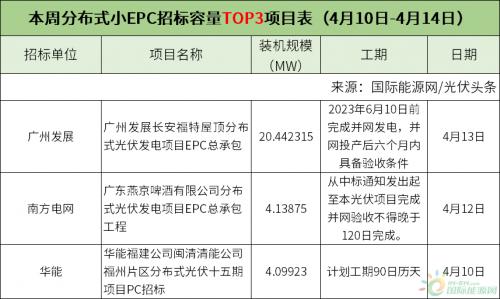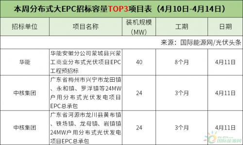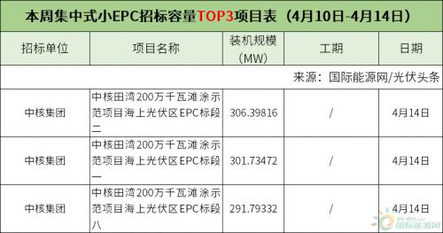 此外,本周分布式小EPC、集中式小EPC招标容量Top3具体情况如下: