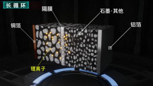 针对长循环的关键技术难题,南都电源开发了石墨膨胀抑制技术,以解决305Ah电池在循环稳定性上的问题。通过石墨层间距和取向度的调控,该技术缓解了石墨脱嵌锂的体积变化,能有效提升结构稳定性、抑制副反应发生。