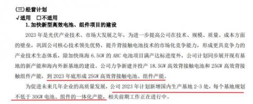 拟64亿元投建珠海一期3.5GW高效晶硅太阳能电池扩产项目及10GW配套组件项目。