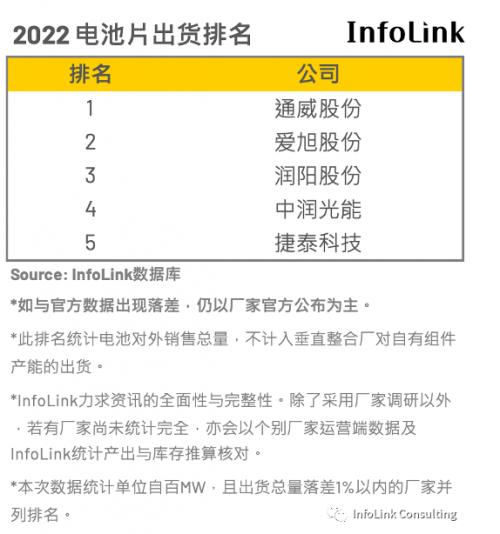 ▲4月17日,Infolink发布最新电池片出货量排名,爱旭股份保持第二地位