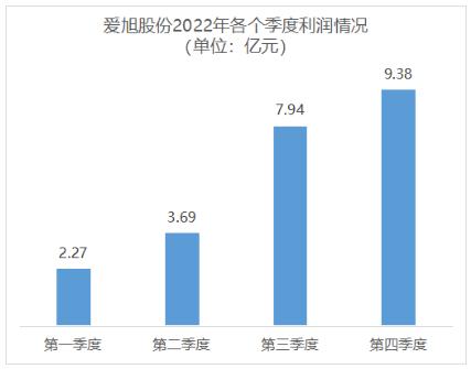 爱旭股份从电池片进行一体化,进而切入组件,但电池片目前仍是公司营收的主要来源。2022年,爱旭股份实现了扭亏为盈的大逆袭,且净利四季连增。