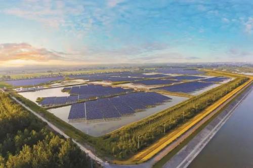 刘汉元介绍,通威已率先在新能源产业链终端布局,首创“渔光一体”发展模式,将光伏发电与水产养殖有机融合,实现国土资源的高效复合利用。目前,通威在全国20多个省区市建设52座以“渔光一体”为主的光伏电站,累计并网规模超3.4GW。通过“渔光一体”项目,通威不仅实现业务整合,还成功打通光伏产业链的下游,两个差距巨大的行业,奏出了和谐动听的“渔光曲”。在土地资源严重不足的情况下,“渔光一体”不仅为通威提供创新发展新动力,还为可持续发展开辟了一条新路径。