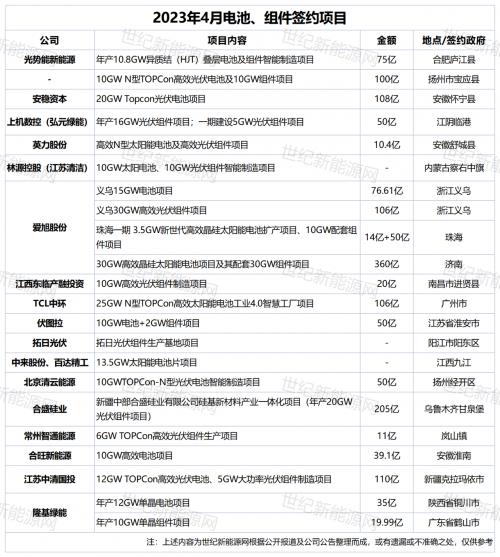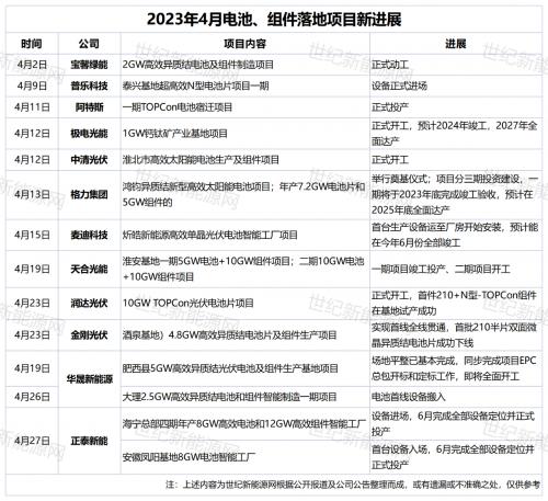 据世纪新能源网不完全梳理,一季度我国光伏产业链扩产项目近70个,投资已近四千亿。4月,各大企业扩产的脚步仍未停止,仅在电池、组件环节就有超20个项目签约和开工。
