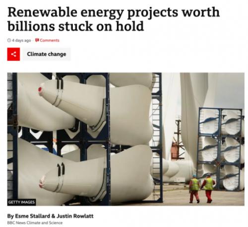 英国BBC报道,英国目前有价值数十亿英镑的绿色能源项目被搁置,因为它们无法接入英国的电网,一些新的太阳能和风能发电站需要等待10到15年才能并网。可再生能源公司担心这种状况可能威胁到英国的气候目标。英国国家电网承认这个问题,表示需要进行根本性改革。