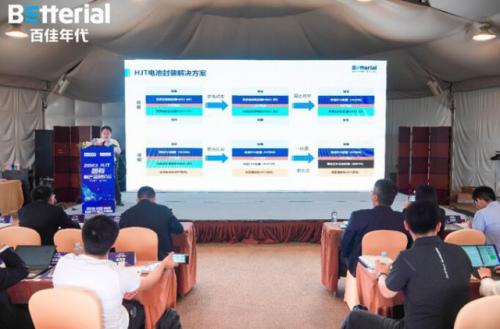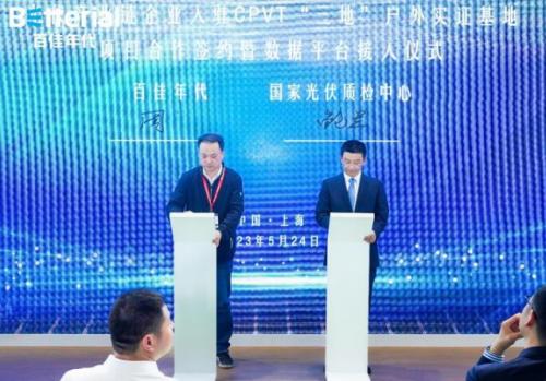 展会首日,百佳年代受邀参加HJT行业技术论坛并发表《高可靠性异质结封装解决方案》主题演讲,与行业专家共同探讨HJT最新发展方向及技术路线。同时,与CPVT国家太阳能光伏产品质量检验检测中心成立联合创新中心并签署三地入驻合作意向书,为高可靠性产品品质保驾护航。