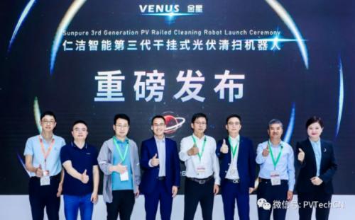 仁洁智能发布了"Venus金星"第三代干挂式光伏清扫机器人,ACWA Power、水发综合能源、协合新能源、晶科运维、林洋智维、AMP Energy、O2 Power等公司的嘉宾出席发布会。
