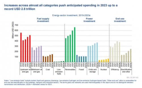 5月30日消息,据国际能源署(IEA)日前发布的《World Energy Investment 2023》,2023年全球能源投资约为2.8万亿美元,其中超过1.7万亿美元预计将用于以可再生能源、电动汽车等为主导的清洁能源领域,剩余约1万亿美元将投向煤炭、天然气和石油等化石能源领域。