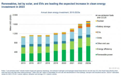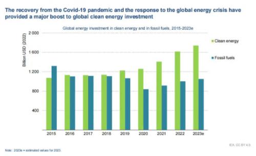 IEA发布的报告显示,2023年全球能源投资约为2.8万亿美元,其中超过1.7万亿美元预计将用于以可再生能源、电动汽车等为主导的清洁能源领域。