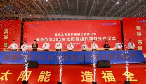 5月29日,晶澳科技邢台基地10GW高效组件项目举行投产仪式,晶澳科技董事长靳保芳、邢台市委书记杨猛等有关领导出席,仪式由邢台市经济开发区党工委副书记、管委会主任商黎英主持。