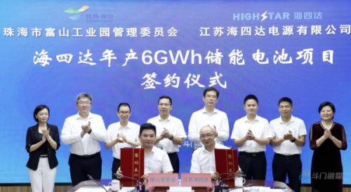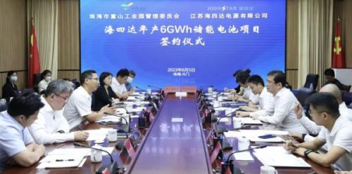 6月5日,江苏海四达电源有限公司6GWh钠离子及锂离子电池与系统生产基地项目签约活动在富山工业园顺利举行。珠海市政府副市长覃春,珠海市工信局局长李丛山,区委副书记、区长韩云,区委常委、副区长谢义维,区委常委、富山管委会常务副主任杨富邦,大横琴集团有限公司副总经理龙文,上海普利特复合材料股份有限公司董事长周文,江苏海四达电源有限公司总经理陈刚出席活动并讲话。