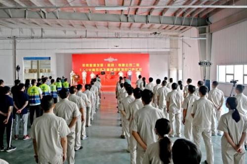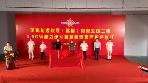 2023年6月13日,英利能源发展有限公司(以下简称“英利能源”)蠡县智慧光伏产业园二期3.9GW项目投产仪式在蠡县英利隆重举行。蠡县政协主席王艳宾,县委常委、宣传部部长孟庆飞,县委常委、开发区党工委副书记、管委会副主任独宇明,宣传部、发改局、开发区等相关负责人;英利中国副总经理王福利、英利能源副总经理朱泽伍,英利能源蠡县公司总经理陈俊玉等领导出席投产仪式并一同为蠡县二期新下线组件进行揭牌。英利能源蠡县公司副总经理陈立新主持此次仪式。