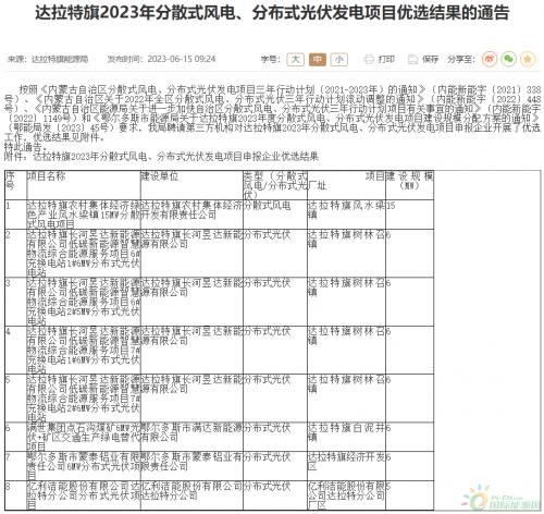内蒙古达拉特旗7个分布式光伏项目优选结果出炉!