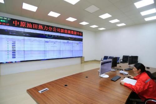 6月26日,中原油田热力分公司新能源数据中心工作人员正在监测油田各个区域光伏电站运行状态,实施远程故障判断,及时下达调控指令,保障光伏电站安全平稳运行。