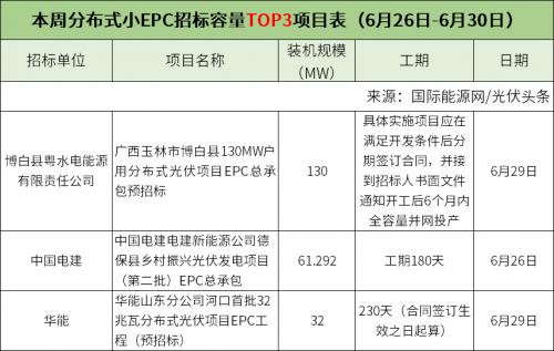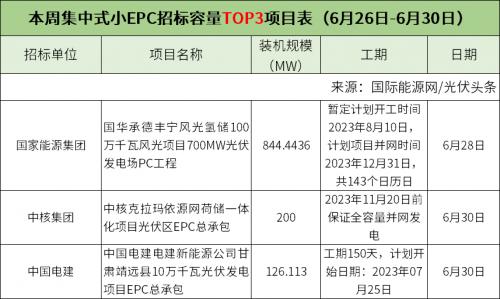 此外,本周分布式小EPC、集中式小EPC招标容量Top3具体情况如下: