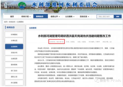 2023年5月26日,水利部河湖管理司负责同志带队调研泗洪县天岗湖光伏违建问题整改工作,淮委、江苏省水利厅和宿迁市负责同志参加调研。