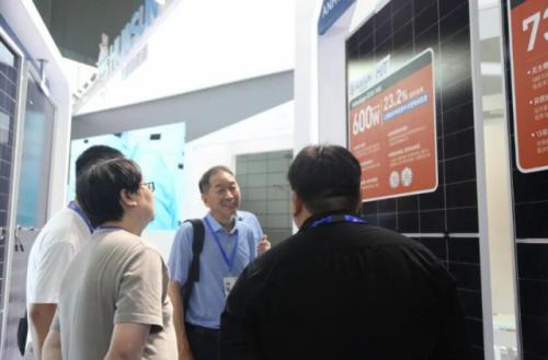 展会首日,安徽省政协副主席郑永飞、中华环保联合会主席孙晓华等领导在巡展时专程来到华晟展台参观,高度赞扬华晟在推动光伏提效降本及市场化应用的突出贡献,并勉励公司深耕太阳能清洁能源,坚持科技创新。