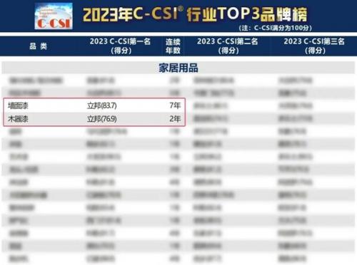 立邦连续七年获得C-CSI®墙面漆榜单第一,连续两年获得C-CSI®木器漆榜单第一