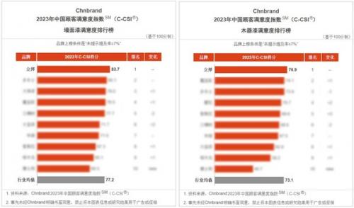 立邦荣登2023年中国顾客满意度指数SM(C-CSI®)墙面漆与木器漆双榜榜首