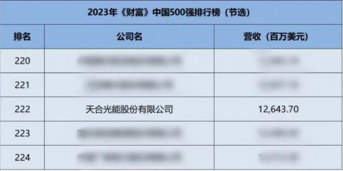7月25日,作为世界500强排行榜的权威发布机构《财富》杂志,正式发布了2023年《财富》中国500强排行榜,天合光能名列222位,继入选2022新经济企业500强、入选首批《财富》中国上市公司500强排行榜之后,天合光能连续多次跻身光伏行业前列。
