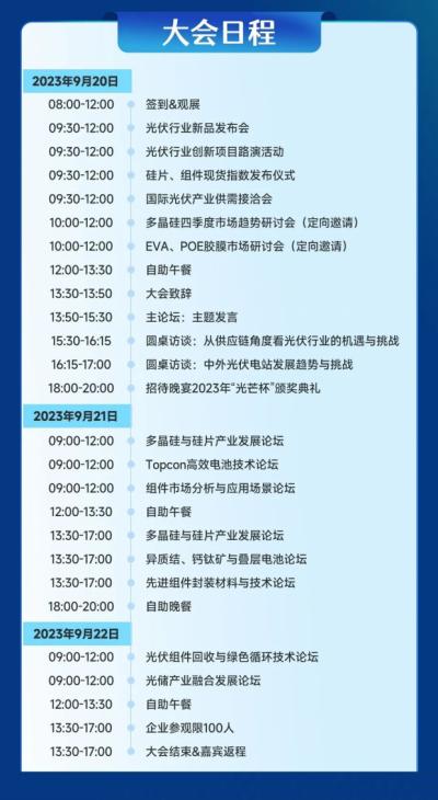 这场属于光伏从业者的年终盛宴即将开启!同期不仅举办【大会主论坛、七大分论坛、新品发布、创新项目路演活动、“光芒杯”颁奖典礼、光伏企业家鸡尾酒会】等丰富活动,预计将有来自海内外的1500位客户出席。