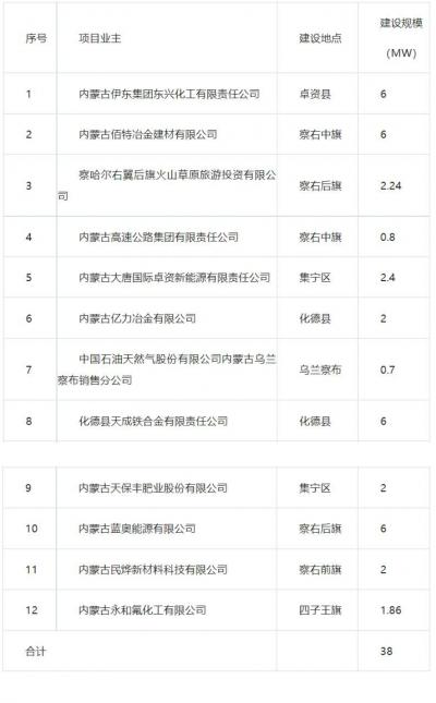 8月21日,内蒙古自治区乌兰察布市发改委公示《乌兰察布市2023年分布式光伏发电项目优选结果》,共计12家企业上榜,涉及分布式光伏项目总规模38MW。