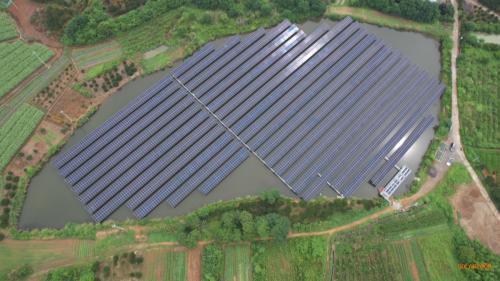 该电站将光伏和渔业两大产业相结合,模式为“板上发电、板下养殖”,是复合型光伏电站的代表之一。项目采用部分钙钛矿α组件,是钙钛矿组件在全球范围内的首次水面项目应用,同时丰富了钙钛矿组件户外商业化实证的应用场景。同时,架设在水面上的光伏阵列为养殖的鱼虾蟹等提供良好的遮阳作用,降低水面温度,减少水分蒸发,一定程度抑制了喜阳藻类繁殖,为鱼类生长提供良好环境,令养殖附加值成倍增加,实现水产养殖、光伏发电互融互补,进一步助推绿色产业与其他传统产业融合发展。