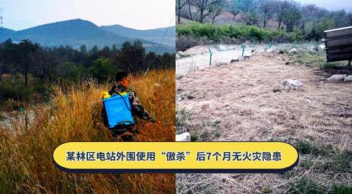 传统农用或非耕地除草剂(如草甘膦、草铵膦等)虽然喷施后当时有效,但对土壤中的草籽无效果,且持效期过短。由于这些单一成分除草剂长期大量地使用,不少杂草对其产生抗性,导致除草效果下降明显。尤其是对于山区、郊野所在电站的芒草、鬼针草、飞机草、银合欢等杂草杂灌效果极差。